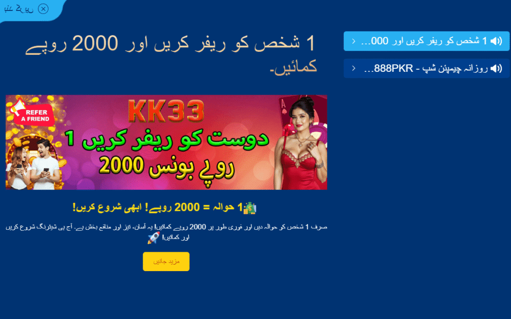 The KK33 Game is one of the latest and most reliable casino games in Pakistan, specifically designed to provide users with real earning opportunities. Players can enjoy exciting casino games for actual prizes, and there are no age restrictions or profit limits, allowing anyone to participate and earn a desired amount. In this article, we will discuss how the game works, its features, offerings, and gameplay to answer any queries you may have. One of the best aspects of the KK33 Game portal is its use of the latest encryption technology, ensuring a safe and secure platform for users.
